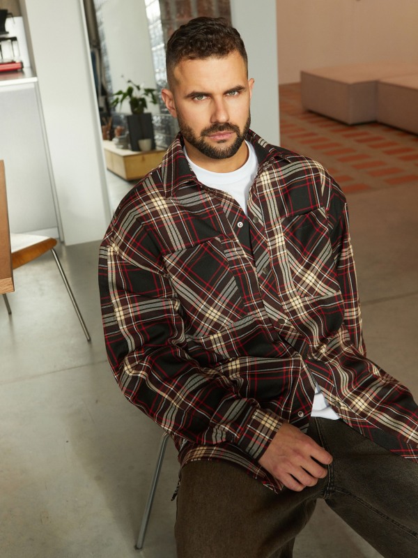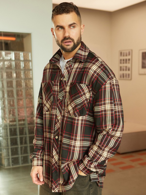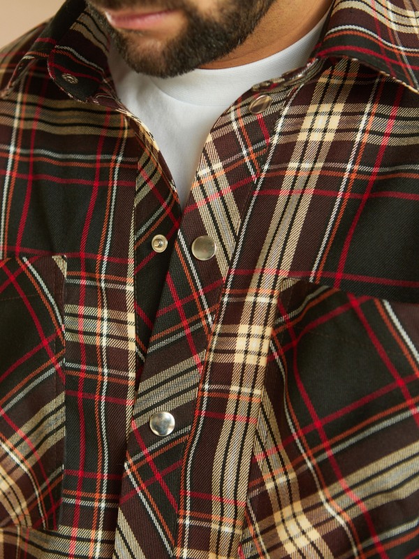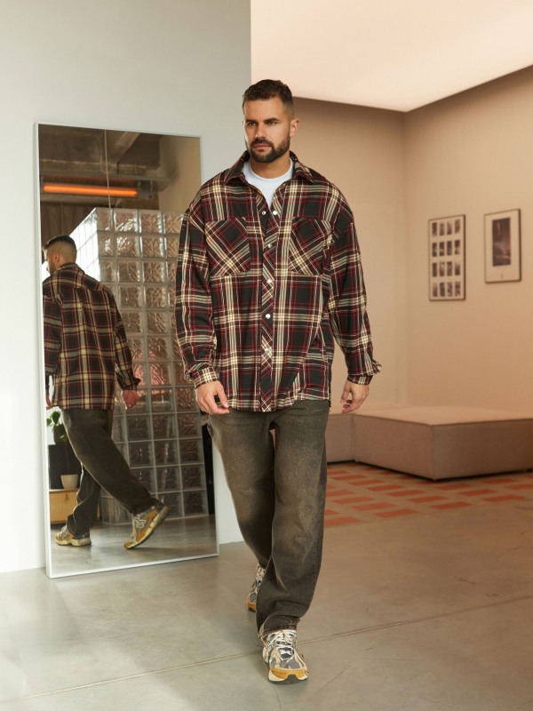 Рубашка мужская "Brooklyn"КОРИЧНЕВО - КРАСНАЯ КЛ.
